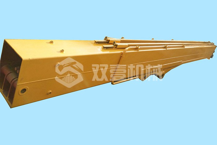 兩節伸縮臂是雙壹機械2005年自主研發的突破性產品,被多家同行模仿制造,從未被超越;臂長度19米,采用高噸位的三機聯動折彎設備折成U型,雙U型對接的焊接方式。