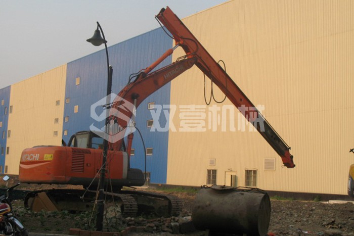 兩節伸縮臂是雙壹機械2005年自主研發的突破性產品,被多家同行模仿制造,從未被超越;臂長度19米,采用高噸位的三機聯動折彎設備折成U型,雙U型對接的焊接方式。