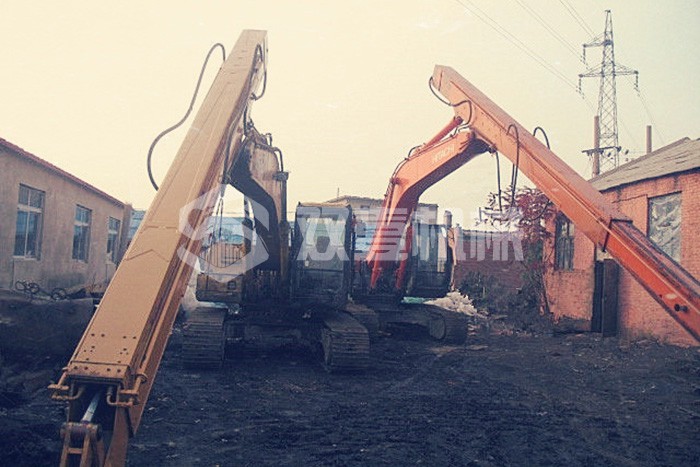 兩節伸縮臂是雙壹機械2005年自主研發的突破性產品,被多家同行模仿制造,從未被超越;臂長度19米,采用高噸位的三機聯動折彎設備折成U型,雙U型對接的焊接方式。