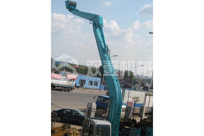 加長臂:加長臂是我們最常見,使用時間更早的大小臂加長臂,不需要伸縮缸控制。它通過大臂、小臂同時加長,配帶小挖斗,擴大機械的工作范圍。