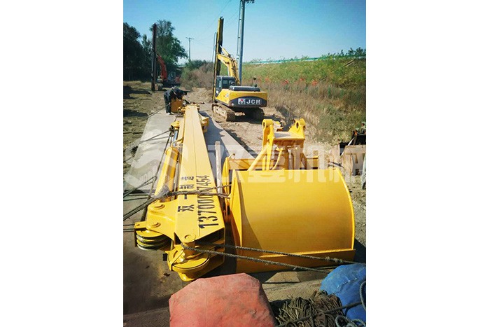 超長四節臂:總長度可達48米,臂內可再伸出3節,施工深度42.5米,配帶貝殼斗1.8立方或挖掘斗1.0立方。