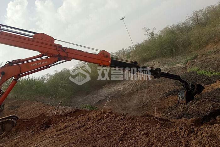 超長四節臂:總長度可達48米,臂內可再伸出3節,施工深度42.5米,配帶貝殼斗1.8立方或挖掘斗1.0立方。